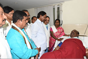 తెలంగాణ అసెంబ్లీ స్పీకర్ మధుసూదనాచారి వడదెబ్బతో పాటు ఇతర అనారోగ్య సమస్యల కారణంగా నిమ్స్ లో చికిత్స పొందుతున్నారు. ఈ నేపథ్యంలో తెలంగాణ మంత్రి కేసీఆర్ స్పీకర్ ను పరామర్శించారు. అంతేకాక నిమ్స్ డైరెక్టర్ నరేంద్రనాథ్ ను స్పీకర్ గురించి వివరాలు అడిగి తెలుసుకొని ఆయనకు మెరుగైన వైద్యం అందించమని కూడా సూచించారు. సీఎంతో పాటు శాసనమండలి ఛైర్మన్ స్వామిగౌడ్, మంత్రి ఇంద్రకరణ్ రెడ్డి, ఎంపీలు జితేందర్ రెడ్డి, నర్సయ్యగౌడ్, ఎమ్మెల్యే ప్రశాంత్ రెడ్డి స్పీకర్ ను పరామర్శించారు.