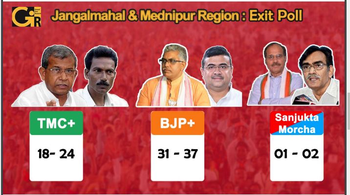 ఇక బెంగాల్ పోలింగ్ కు తీవ్ర ఉద్రిక్తతలు స్పష్టించిన జంగల్ మహాల్, మిడ్నాపూర్ ఏరియాలో మాత్రం బీజేపీ సత్తా చాటనుందని తెలుస్తోంది. ఇక్కడ బీజేపీకి స్పష్టమైన ఆధిక్యత కనిపిస్తోంది. జంగల్ మహాల్, మిడ్నాపూర్ ఏరియాలో బీజేపీకి 31-37 అసెంబ్లీ సీట్లు గెలవనుండగా.. టీఎంసీ కేవలం 18-24 స్థానాలకే ఆగిపోనుందని సర్వే చెబుతోంది. మమతా బెనర్జీ పోటీ చేసిన నందిగ్రామ్ అసెంబ్లీ స్థానం ఈ ఏరియాలోనే ఉంది. ఎన్నికలకు ముందు టీఎంసీ నుంచి బీజేపీలో చేరిన సువేందు అధికార ఈసారి కూడా నందిగ్రామ్ ఏరియాలో తన పట్టు నిలుపుకున్నారని గ్రౌండ్ జీరో రీసెర్చ్ ఎగ్జిట్ పోల్స్ ను బట్టి అంచనా వేస్తున్నారు. దీంతో నందిగ్రామ్ లో మమతా బెనర్జీ పరిస్థితి ఏంటన్నది ఆసక్తిగా మారింది. నందిగ్రామ్ లో తాము తప్పకుండా గెలుస్తామని బీజేపీ ధీమాగా చెబుతోంది.