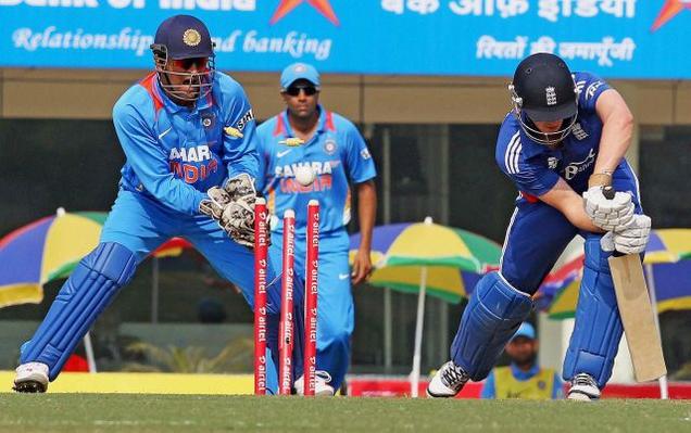 భారత్ లో జరుగుతున్న మూడో వన్డేలో ముందుగా బ్యాటింగ్ చేసిన ఇంగ్లాండ్ 42.2 ఓవర్లలో 155 పరుగులకు ఆలౌటైంది. భారత్ ముందు 156 పరుగుల విజయ లక్ష్యాన్ని ఉంచింది. భారత బౌలర్లు కట్టుదిట్టంగా బౌలింగ్ చేయడంతో ఇంగ్లాండ్ జట్టు స్వల్ప స్కోరుకే పరిమితమయింది. ఇంగ్లండ్ ఆటగాళ్లలో రూట్39, బెల్ 25, బ్రెస్నన్ 25, కుక్ 17, పీటర్సన్ 17, మోర్గాన్ 10 పరుగులు చేశారు. భారత బౌలర్లలో జడేజా 3, అశ్విన్ 2, ఇషాంత్ శర్మ 2 వికెట్లు తీశారు. భువనేశ్వర్ కుమార్, షమీ అహ్మద్, రైనా తలో వికెట్ దక్కించుకున్నారు.