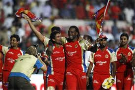 ఐ.పి.ఎల్.-6 లో క్రిస్ గేల్ మరోసారి విజృంభించడంతో కోల్ కత్తా నైట్ రైడర్స్ బౌలర్లకు చుక్కలు కనిపించాయి. క్రిస్ గేల్ వీరవిహారంతో బెంగళూరు రాయల్ ఛాలెంజర్స్ 155 పరుగుల లక్ష్యాన్ని కేవలం 17.3 ఓవర్లలో 2 వికెట్లు కోల్పోయి 156 పరుగులు ఛేదించింది. మొదట టాస్ గెలిచి బెంగళూరు రాయల్ ఛాలెంజర్స్ ఫీల్డింగ్ ఎంచుకుంది. కోల్ కత్తా ఓపెనర్ బిస్లా (1) తొలి ఓవర్లోనే పెవిలియన్ చేరుకున్నాడు. మరో ఓపెనర్ కోల్ కత్తా నైట్ రైడర్స్ కెప్టెన్ గౌతమ్ గంభీర్ కు జాక్విస్ కల్లీస్ జత కలిశాడు. వీరిద్దరూ ఇన్నింగ్స్ ను సరిదిద్దే క్రమంలో జట్టుస్కోరు 54 వద్ద ఉండగా వినయ్ కుమార్ బౌలింగ్ లో కల్లీస్ 16 పరుగులు చేసి వెనుదిరిగాడు. గౌతమ్ గంభీర్ 46 బంతుల్లో 59 పరుగులు చేశాడు. యూసుఫ్ పఠాన్ 27, డివిలియర్స్ 23, మనోజ్ తివారీ 23 ఇన్నింగ్స్ రన్ రేట్ పెంచేక్రమంలో ధాటిగా ఆడి పెవిలియన్ చేరుకున్నారు. కోల్ కత్తా నైట్ రైడర్స్ మిగతా బ్యాట్స్ మెన్ స్కోర్లు మోర్గాన్ 2, భాటియా 13, మెక్ లారెన్ 2, సంగ్వాన్ 4 నాటౌట్, నరైన్ 1 నాటౌట్. నిర్ణీత ఇరవై ఓవర్లలో 8 వికెట్లకు 154 పరుగుల వద్ద తెరపడింది. తరువాత ఇన్నింగ్స్ ప్రారంభించిన బెంగళూరు రాయల్ ఛాలెంజర్స్ ఓపెనర్ అగర్వాల్ (6) వికెట్ ను జారవిడుచుకున్నా మరొక ఓపెనర్ క్రిస్ గేల్ కు కెప్టెన్ విరాట్ కోహ్లీ తోడవడంతో ఛాలెంజర్స్ ఇన్నింగ్స్ జెట్ స్పీడ్ లో పరుగులు రాబట్టింది. క్రిస్ గేల్ ఆకాశమే సరిహద్దుగా చెలరేగిపోయాడు. క్రిస్ గేల్ రికార్డ్ స్థాయిలో తొమ్మిది సిక్సర్లు బాదాడు. క్రిస్ గేల్ 50 బంతుల్లో 85 నాటౌట్, ఇందులో 4 బౌండరీలు కాగా 9 సిక్సర్లు ఉన్నాయి. కోహ్లీ 35 పరుగులు, డీవిలియర్స్ 22 నాటౌట్ గా నిలిచారు. కోల్ కత్తా నైట్ రైడర్స్ బౌలర్లకు చుక్కలు చూపించిన క్రిస్ గేల్ కు మ్యాన్ ఆఫ్ ది మ్యాచ్ అవార్డు దక్కింది.
