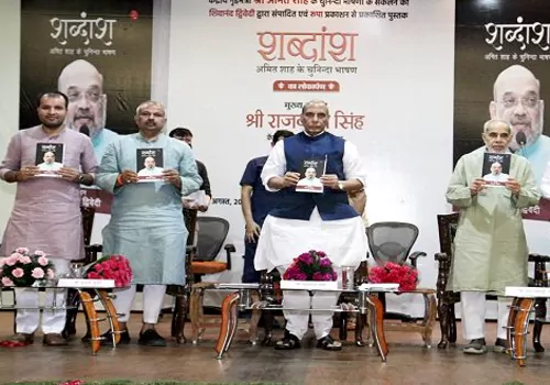గాంభీరత, స్థితప్రజ్ణత అమిత్ షా భూషణాలు.. రాజనాథ్ సింగ్ పోగడ్తల వర్షం