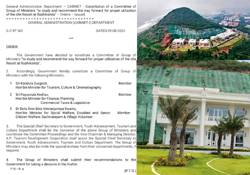 మంత్రు లు పయ్యావుల కేశవ్, కందుల దుర్గేష్, డోలా బాలవీరాంజనేయస్వామిలతో ప్రభుత్వం కమిటీని వేసింది. ఈ మేరకు సీఎస్ విజయానంద్ శుక్రవారం (ఆగస్టు 29) ఉత్తర్వులు జారీ చేశారు.  ఈ కమిటీ రుషికొండ ప్యాలెస్, భవనాలను వినియోగించే మార్గాలు, అవకాశాలపై అధ్యయనం చేసి ప్రభుత్వానికి  నివేదిక ఇవ్వాల్సి ఉంటుంది. ఈ కమిటీ నివేదిక అనంతరం రుషికొండ ప్యాలెస్, భవనాల వినియోగం విషయంలో కూటమి సర్కార్ ఒక నిర్ణయం తీసుకుంటుంది.