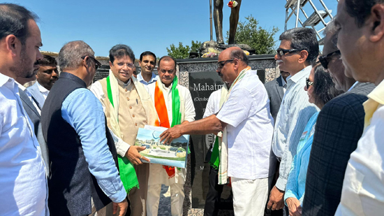 తెలంగాణ రాష్ట్ర ముఖ్యమంత్రి రేవంత రెడ్డి, ఐ.టి శాఖామంత్రి దుద్దిళ్ళ శ్రీధరబాబు, రహదారులు మరియు భవనాలు, సినిమాటోగ్రఫీ మంత్రి కోమటిరెడ్డి వెంకటరెడ్డి అమెరికా దేశంలోనే అతి పెద్దదైన డాలస్ నరంలో నెలకొనిఉన్న మహాత్మాగాంధీ స్మారకస్థలిని బుధవారం సందర్శించి జాతిపితకు పుష్పాంజలి ఘటించి ఘన నివాళులర్పించారు. అమెరికా పర్యటనలో ఉన్న ఈ నాయకులతో పాటు ఇండియన్ కాన్సల్ జనరల్ డి.సి మంజునాథ్ కూడా మహాత్మాగాంధీ విగ్రహానికి నివాళులర్పించారు.
