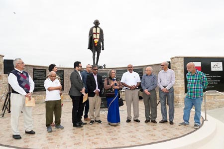 Dallas, TX: Mrs. Ela Gandhi, 76, granddaughter of Mahatma Gandhiji visited Gandhi Memorial Plaza in Dallas (Irving City) on February 13th to pay rich tribute to Gandhiji.