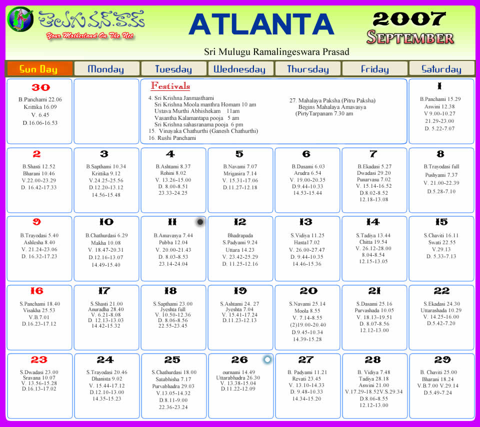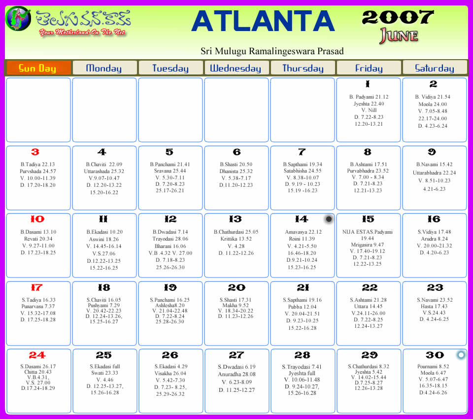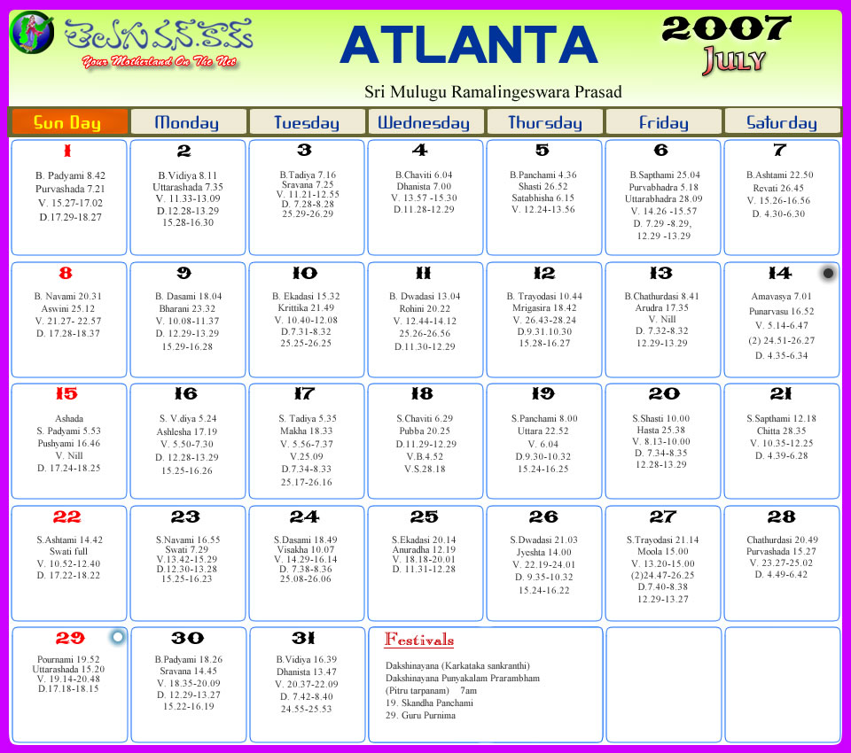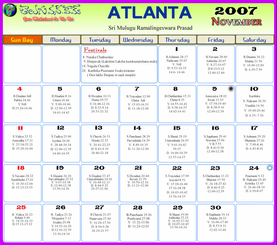 Atlanta Telugu 2007 Calendar