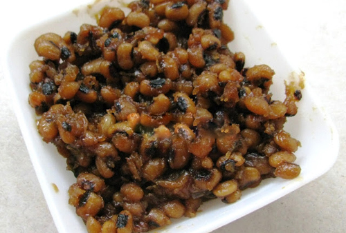Soak black eyes beans in enough water for 4-5 hours. Pressure cook for 3-4 whistles by adding a pinch of salt to this. Do not over cook and mash the peas. In a pan add jaggery and add 1-2 tblsp of water. When the jaggery melts completely, strain the impurities and boil it again in a low flame for 2-3 minutes.Dont allow it to solidify, it should boil for 2/3 mints. Now add in the cooked Black eyed beans after draining the excess water. Stir it well and saute till the jaggery mixture gets incorporated well with the beans and all the moisture evaporates. Even if you find the moisture is there, do not worry after adding coconut it will come to the right consistency. Add cardamom powder in the last and mix well. Garnish it with Kaju. And your Black bean sweet dish is ready for Naivedhyam.
