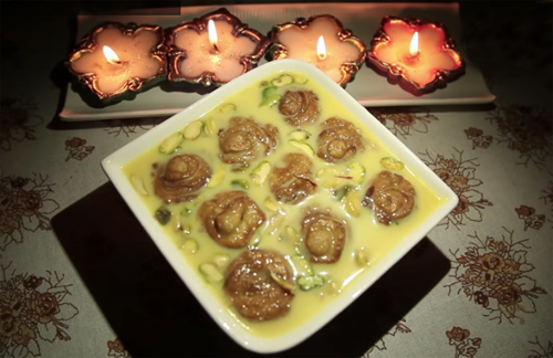 ముందుగా మైదాలో చిటికెడు ఉప్పు కలిపి పూరీ పిండిలా గట్టిగా కలుపుకుని అరగంట నానబెట్టుకోవాలి. పాలలో చెక్కర, కుంకుమ పువ్వు వేసి ఉంచుకోవాలి. మైదా నానిన తరువాత ఆపిండి మొత్తాన్ని రెండు భాగాలుగా విడదీసి ఒక ముద్దను బాగా మర్దనా చేసి పలుచగా పెద్ద పూరీలా వత్తుకుని ఆ పలుచని పెద్ద పూరీపై నూనెరాసి దానిపై గోధుమ (లేక) వరిపిండి జల్లి చాప చుట్టుగా ఆ పూరీచుట్టుకోవాలి. పొడవుగా కర్రలా వున్న ఆ చుట్టని చాకుతో చక్రాలుగా కోసుకొని ఒక్కో ఉండని చేతిలో గుండ్రంగా అదమాలి. లోపల పోరలతో గుండ్రని భూ చక్రాలుగా ... ఈ అన్ని బిళ్ళలనూ వత్తుకొని వేడి నూనెలో దోరగా వేయించుకుని ప్రక్కన పెట్టుకోవాలి. మిగిలిన పిండినీ ఇలాగా చేసి వేయించుకోవాలి. ప్రక్క స్టౌవ్ మీద దళసరి గిన్నెలో చిన్న మంటపై పాలు, చెక్కెర కుంకుమ పువ్వులు వేసి కలుపుతూ మరిగించుకొని.... ఈ బిళ్ళలను ఒకొక్కటిగా వేసి స్టౌవుని ఆ పేసి అరగంట భూ చక్రాలను వేరే పళ్ళెంలోకి తీసుకుని పిస్తా పప్పు తో అలంకరించుకోవాలి .