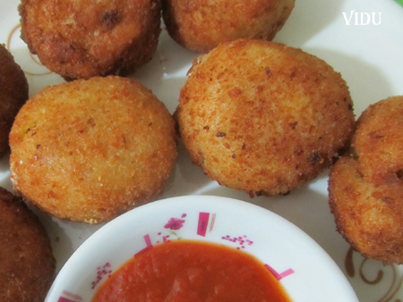 4. ఇప్పుడు బ్రెడ్ స్లైసెస్ తీసుకొని వాటిని పాలతో కొంచెం తడిపి ఒకొక్క బ్రెడ్ కి ఒకొక్క వుండని పెట్టి బొండా లా చేసుకొని దానిని నునెలో వేయించు కోవాలి. అంతే బ్రెడ్ బొండా రెడీ.. వీటిని టొమాటో సాస్ తో తింటే బాగుంటుంది.