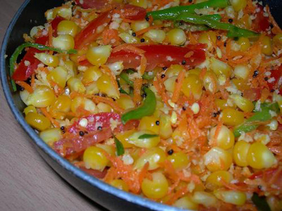 ఇది తయారుచేసే ముందు సెనగ పప్పుని నానబెట్టి ఉడుకించి పక్కన పెట్టుకోవాలి. అలాగే స్వీట్ కార్న్ ని కూడా ఆవిరిపై ఉడికించి కాస్త ఉప్పు జల్లి పక్కన ఉంచాలి. ఇప్పుడు స్టవ్ ఆన్ చేసి కడాయి పెట్టి నూనె వేసి ఆవాలు జీలకర్ర వేయాలి. అవి చిటపటలాడాకా పచ్చిమిర్చి, కరివేపాకు వేయాలి. అందులో కేరట్ తురుము వేసి రెండు నిమిషాలు కదపాలి. తరువాత ఉడికించిన సెనగపప్పు, కార్న్స్, పచ్చి మామిడి తురుము వేసి మూత పెట్టి ఉంచాలి. రెండు నిమిషాలు అయ్యాకా మూత తీసి అందులో తగినంత ఉప్పు జోడించి ఒక ప్లేట్ లోకి తీసి దానిని కొత్తిమీరతో అలంకరించుకుంటే చాలు. వేడివేడిగా ఉండే కార్న్ మాంగో చట్ పట్ రెడీ.