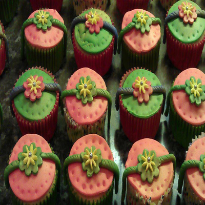 Spoon the batter into cupcake tray. Bake in a preheated oven at 375 degrees fahrenheit, for 20-25 minutes. Bake u til the tops spring back when lightly pressed. When cooled, the cupcakes are ready for your favorite Raakhi decoration and frosting. Let us know how many remained after everyone gulped these amazing Raakhi special dark chocolate cupcakes !