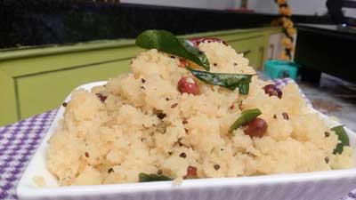 * ముందుగా దళసరి గిన్నె తీసుకుని వేడి చేసి బియ్యం రవ్వ గ్లాసు అయితే 2 గ్లాసుల కొలతల ప్రకారం నీటిని వేడి చేసుకుని అందులో ఉప్పు, పసుపు కొద్దిగా నూనె వేసి ...నీళ్ళు సలసల మరుగుతున్నప్పుడు కొద్దికొద్ది రవ్వ పోస్తూ కలిపి మంట బాగా తగ్గించి మూతపెట్టాలి.