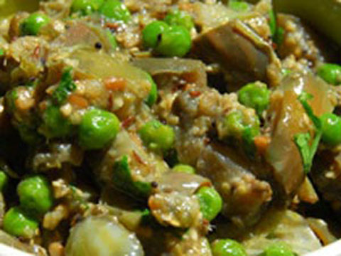Home » Vegetarian » Brinjal Peas Curry Recipe