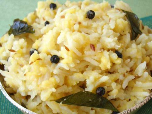 * ఇందులో తగినంత ఉప్పు వేయాలి. నీళ్లు మరుగుతున్నప్పుడు బియ్యం, పప్పు నీళ్లనుండి తీసి వేసి మెత్తగా ఉడికించాలి. చివరిలో మిగిలిన నెయ్యి వేసి దింపేయాలి.