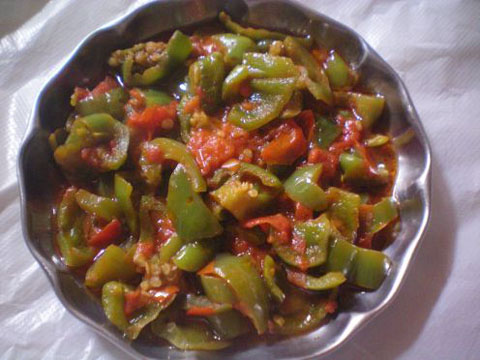 * ఉల్లిపాయలు కొంచం బ్రౌనిష్ వచ్చాక క్యాప్సికం ముక్కలు వేసుకొని వేయించాలి. క్యాప్సికం ఫ్రై అయిన తరువాత అందులో రెడీ చేసి పెట్టుకున్నవేరుశెనగ మసాల పేస్ట్ ను వేసి కొద్దిసేపు వేయించుకొవాలి.