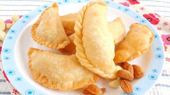 Kajjikaya has a light, crisp exterior and as you bite into this crescent shaped sweet, its crunchy texture with the subtle sweet flavor of dried coconut and sugar laced with a tinge of cardamom, stretches into every bite, leaving you very satisfied and craving for more. The sweetness of the kajjikaya is subtle that you can easily have 2 to 3 kajjikayalu without feeling heavy.