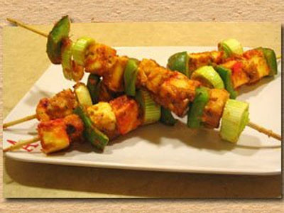 Add the left marinade to the vegetables.Brush the marinade to the paneer and refrigerate it for 3 hours.