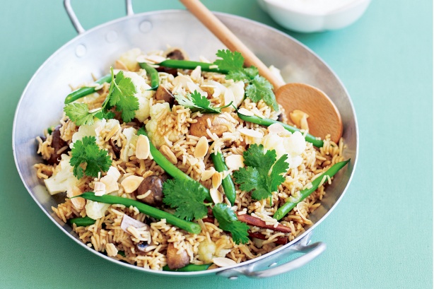 * Top biryani with coriander and almonds. Serve with yoghurt.