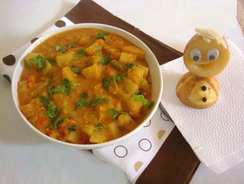 తర్వాత ఉడుకుతున్న మిశ్రమంలో బంగాళదుంప, క్యారెట్ వేసి గ్రేవిలో కలిసేవరకు వుంచి చివరిలో పెరుగు కలపుకోవాలి.