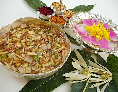 ముందుగా అందరికీ "శ్రీ మన్మథ నామ" ఉగాది శుభాకాంక్షలు . ఉగాది రోజు చేసుకోవటానికి మామిడితో స్వీట్స్ , పులిహోర వంటివి నేర్చుకున్నాం. అసలు వంటకం గురించి చెప్పుకోకపోతే ఎలా? ఉగాది పచ్చడి సరిగ్గా కుదిరితే సంవత్సరమంతా బావుంటుంది అంటారు కదా... ఏ రుచి ఎక్కువ కాకూడదు, తక్కువ కాకూడదు. అందుకే కొలతలతో సహా ఇస్తున్నాం. రుచిగా చేసి ఆరగింపు పెట్టుకోండి. కావలసిన పదార్థాలు: