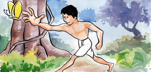 అనగనగా అడవిని ఆనుకొని ఒక ఊరు ఉండేది. ఆ ఊళ్ళో నరసయ్య, నరసమ్మ అనే దంపతులు ఉండేవాళ్ళు. వాళ్ళ కొడుకు భరత్ చాలా మంచివాడు. ఒకరోజున అతను అలా సరదాగా తోటలో తిరుగుతూ ఉంటే అందమైన సీతాకోకచిలుక ఒకటి కనబడ్డది. అది చాలా అందంగా ఉంది; ఒకసారి వచ్చి అతని చెయ్యి మీదనే వాలి, మళ్ళీ దూరంగా ఉన్న పువ్వుల మీద వాలి, హడావిడిగా అటూ-ఇటూ తిరుగుతూ సందడి చేసిందది. దాన్నే కొద్ది సేపు చూసిన భరత్కి 'ఇక దాన్ని పట్టుకుందాం' అనిపించింది. ఆ సీతాకోక-చిలుక వెంట పడ్డాడు. అయితే అది ఎంత సేపటికీ అతన్ని ఊరిస్తూ పోయింది గానీ, చేతికి మాత్రం చిక్కలేదు. తెలివి వచ్చి చూసుకునే సరికి, భరత్ తమ తోటను ఎప్పుడో దాటిపోయి ఉన్నాడు. ఇప్పుడు ఎక్కడో, అడవిమధ్యలో ఉన్నాడు. వెనక్కి వెళ్ళే దారేది?!