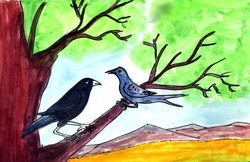అనగనగా ఒక అడవిలో ఒక కాకి, ఒక కోయిల ఉండేవి. అడవిలోని ఒక వృక్షం మీద వాటి నివాసం ఉండేది. ఒకరోజున వాటికి చాలా ఆకలైంది. ఆహారం కోసం అడవి అంతా గాలించాయి. ఎంత వెతికినా తినేందుకు ఏమీ దొరకలేదు. తిరిగి తిరిగి పాపం, అవి బాగా అలసిపోయాయి కూడా. దాహంతో వాటి నోరు పిడచబారింది. "ఇక లాభం లేదు- ఈ పూటకు నీటితోటే కడుపు నింపుకుందాం!' అని అనుకునే సరికి అవి అడవిని దాటి జనావాసాలను చేరుకొనేసాయి! అది మండు వేసవి.