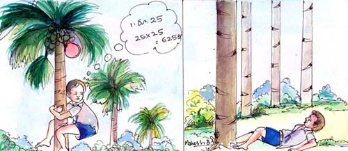 ఒక రోజున ఇట్లాగే పగటి కలలు కంటూ కూర్చున్న రాముని వచ్చి పలకరించాడు ఒక రైతు. "నాకు 25 తాటి చెట్లు ఉన్నాయి. ఆ తాటి చెట్లు ఎక్కి, తాటికాయలు కోసి క్రిందకు దించితే- చెట్టుకు 25 రూపాయలు చొప్పున ఇస్తాను" అన్నాడు. రాముకు చదవటం అంటే ఎంత అయిష్టం ఉన్నా, చెట్లు ఎక్కడం అంటే మాత్రం చాలా ఇష్టం!