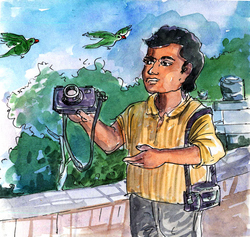 మనం ఫొటో తీసిన పిట్ట రకాన్ని బట్టి వాళ్ళు వెయ్యి రూపాయల వరకూ ఇవ్వవచ్చు. అంతే కాక ప్రశంసా పత్రం, ఆ ఫోటోలు తీసిన వ్యక్తి గురించి దిన పత్రికలో ఓ చిన్న సమాచారం కూడా వేస్తారట. అయితే పక్షులన్నీ కనబడేది తెల్లవారు జాముననే కదా, అందుకని మనం రేపు ఉదయాన్నే 5:30కి లేచి మేడ మీద కూర్చొని ఆ పక్షుల ఫోటోలు తీద్దాం" అని చెప్పారు. దినపత్రికలలో తన గురించి వేయటం, నగదు-ప్రశంసా పత్రం- ఇట్లాంటి మాటలు వినగానే కుమార్కు ఆశ పుట్టింది. మరుసటి రోజునుండి ఉదయం 5:30 కల్లా నిద్రలేచి, మేడపైకి వెళ్లి, పక్షుల కోసం ఎదురు చూడసాగాడు. అక్కడ వాడికి రకరకాల పక్షులు కనిపించేవి. చిలకలు, పిచ్చుకలు, కొంగలు- ఒక్కోసారి ఏవో వింత పిట్టలు కూడాను. అయితే వాడు ఫొటో తీద్దామనుకునేసరికి అవి ఎగిరిపోయేవి.