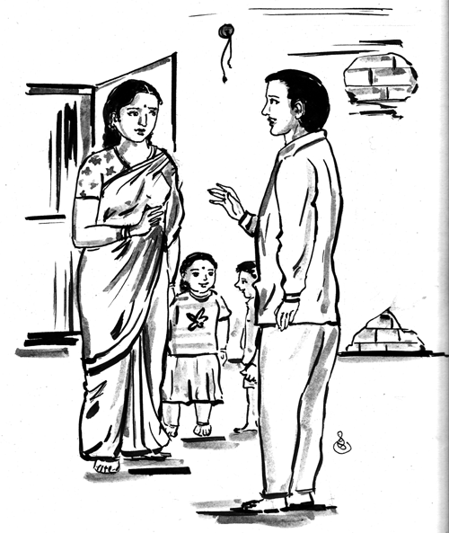మాసిపోయిన గోడలు.. వంటగదిలో ప్లాట్ఫామ్గానీ, కుళాయిగానీ ఏంలేవు. రెండు గదులకు పాతబడి పెచ్చులూడిన రూఫు... మూడోగదికి రూఫ్... వుంది. అయితే బంగాళాపెంకు, కొన్ని పెంకులు ఎవరరిస్తే ఎగిరిపోయాయో ఏమో గానీ మిస్సింగ్. ఎండా, వానా ఎంచక్కా లోపల నుంచే చూసే వీలు.. ఒకోసారి ఒకోలా పన్జేసే కుళాయిలు. నేల జిడ్డు పట్టేసివుంది. జారతామేమోగానీ పడతామన్న భయంలేదు. ఎన్ని యాసిడ్ బాటిళ్ళు, సోపు ప్యాకెట్లూ వాడాలో అన్నదే అర్ధాంగి ఆలోచన. ఆ ఆలోచనతో పైకిచూసింది. తిరగాలా? వద్దా... అన్నట్లు ప్రభుత్వ ఆఫీసుల్లో పన్జేసేవారిలా తుప్పుపట్టి, గొప్ప చప్పుడు చేసే ఫ్యాన్లు.