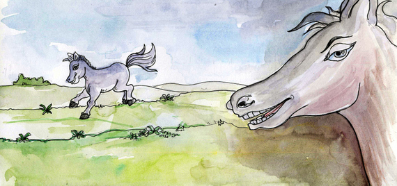 అనగనగా ఒక ఊళ్ళో ఒక చలాకీ గుర్రపు పిల్ల ఉండేది. దాని పేరు జాకీ. దానికి వేగంగా దౌడు తీయడమన్నా, కొత్త ప్రదేశాలు చూడటమన్నా భలే సరదా. పరిగెడుతూ పోతే ఆకలి మాట కూడా గుర్తుకురాదు దానికి. కానీ వాళ్ళమ్మ దానిని ఊరి పొలిమేరలైనా ఎప్పుడూ దాటనిచ్చేది కాదు- ' పిల్లది దారి తప్పిపోతుందేమో ' అని భయం వాళ్ళమ్మకి.