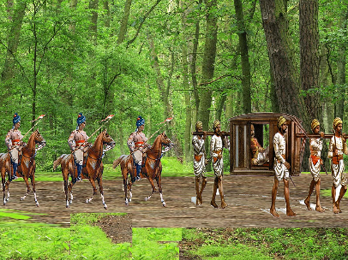 మేనాలు తీసుకొని వెళ్లే బోయీలు కాక నలువురు భటులు.. ఒక అధికారి ఉన్నారు. త్రోవలో భోజన, విశ్రాంత్యాది కార్యక్రమాలకి కూడా అన్ని ఏర్పాట్లూ చేశామన్నారు.
