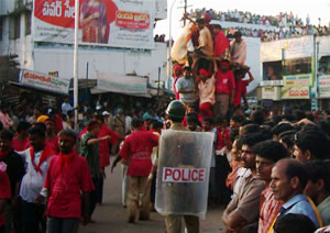 After completion of Utsav near 3 lanterns junction at Vizianagaram thousands of people will make darshan of sirimanu. Farmers will take a small part of branch and keep it near plough at their house to have a good crop in the coming year. |