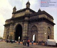 The Gateway of India is Mumbai's most famous monument. This is the starting point for most tourists who want to explore the city. It was built as a triumphal arch to commemorate the visit of King George V and Queen Mary to Bombay prior to the Dur­bar in Delhi in 1911, complete with four turrets and intricate latticework carved into the yellow basalt stone.