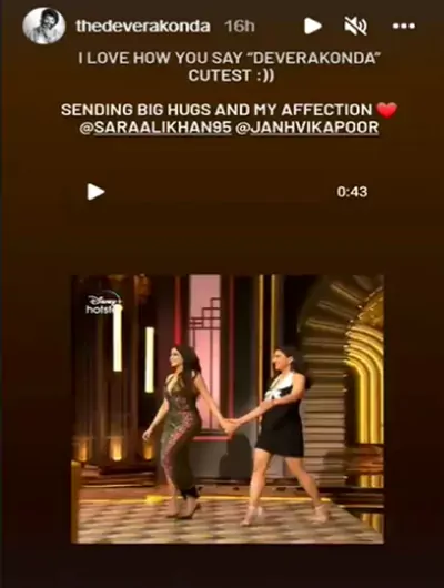 మరోవైపు తనతో డేటింగ్ చేయాలనుందని బాలీవుడ్ బ్యూటీలు చెప్పడంపై విజయ్ స్పందించాడు. తన ఇన్ స్టాగ్రామ్ స్టోరీలో ప్రోమోని షేర్ చేసిన విజయ్.. "మీకు నా బిగ్ హగ్, అఫెక్షన్" అని రాసుకొచ్చాడు.
