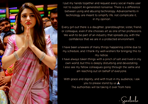 Prominent actress Sreeleela has issued a powerful statement addressing the growing threat of AI-generated content and the "deeply disturbing" abuse of technology targeting women in the creative arts.