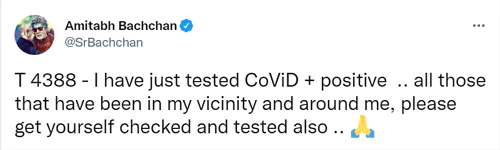 మొదటిసారి 2020లో కరోనా బారిన అమితాబ్ ఆసుపత్రిలో చికిత్స తీసుకొని కోలుకున్నారు. ఆ సమయంలో ఆయన కుమారుడు అభిషేక్, కోడలు ఐశ్వర్య, మనవరాలు ఆరాధ్య సైతం కరోనా బారిన పడి కోలుకున్నారు. మళ్ళీ రెండేళ్ల తర్వాత ప్రస్తుతం 'కౌన్ బనేగా క్రోర్పతి' టీవీ షో షూటింగ్ లో పాల్గొంటున్న ఆయనకు తాజాగా మరోసారి కరోనా సోకింది. తనకు కరోనా పాజిటివ్ అని తేలిందని, ఇటీవల తనను కలిసిన వాళ్ళు కరోనా పరీక్షలు చేసుకోవాలి ఆయన ట్వీట్ చేశారు.