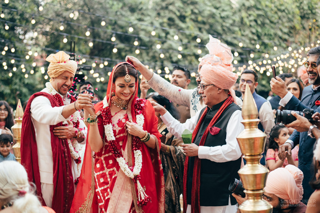 ఆమె షేర్ చేసిన రెండు ఫొటోల్లో ఆ ఇద్దరూ చేయీ చేయీ కలిపి ఏడడుగులు నడుస్తూ కనిపిస్తున్నారు. ఒక పిక్చర్లో పూలదండలు మార్చుకుంటున్నారు. మరో పిక్చర్లో మండపంలో కూర్చొని పెళ్లి తంతులో పాల్గొంటున్నారు. దియా రెడ్ కలర్ శారీలో మెరిసిపోతోంది. ఈ వేడుకలో 50 మంది లోపలే అతిథులు హాజరయ్యారు. వారిలో నటి అదితి రావ్ హైదరి కూడా ఉంది.