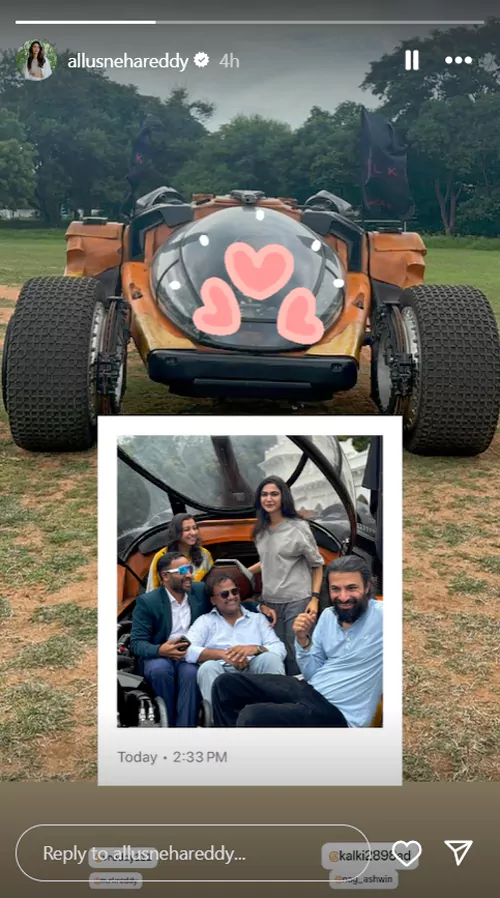 తాజాగా ఇన్ స్టాగ్రామ్ లో అల్లు స్నేహా రెడ్డి పెట్టిన స్టోరీ అందరి దృష్టిని ఆకర్షిస్తోంది. బుజ్జి కారులో నిల్చొని దిగిన ఫొటోను ఆమె షేర్ చేశారు. ఆ ఫొటోలో 'కల్కి' చిత్ర దర్శకుడు నాగ్ అశ్విన్ కూడా ఉండటం విశేషం. ప్రస్తుతం ఈ ఫొటో సోషల్ మీడియాలో వైరల్ గా మారింది.