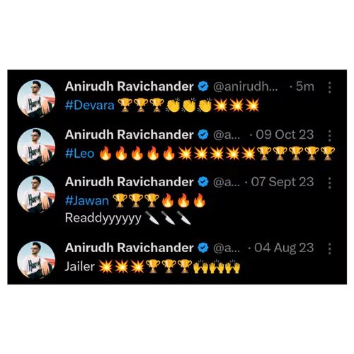 తాను సంగీతం అందించే భారీ చిత్రాల విడుదలకు ముందు.. పవర్ ఫుల్ ఎమోజీలతో అనిరుధ్ తన మార్క్ స్పెషల్ ట్వీట్ చేస్తుంటాడు. 'జైలర్', 'జవాన్', 'లియో' సినిమాల విడుదలకు ముందు.. అనిరుధ్ అలాగే ట్వీట్ చేయగా అవి బ్లాక్ బస్టర్ అయ్యాయి. 'దేవర' రిలీజ్ కి ముందు కూడా అనిరుధ్ నుంచి అటువంటి ట్వీట్ కోసం అభిమానులు ఎంతగానో ఎదురుచూస్తున్నారు. ఈ క్రమంలో తాజాగా 'దేవర' గురించి తన మార్క్ ట్వీట్ చేసిన అనిరుధ్.. బ్లాక్ బస్టర్ స్టాంప్ వేసేశాడు. దీంతో ఫ్యాన్స్ ఫుల్ ఖుషీ అవుతున్నారు.