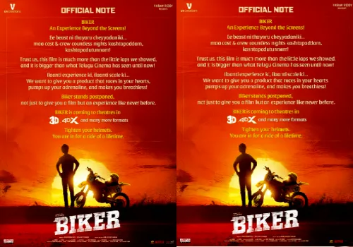 Charming Star Sharwanand's Biker has been announced to release on 6th December, a day post Akhanda 2 release. Now, they have paved way for NBK and Boyapati Srinu's Pan-India film and postponed the movie release. Producer UV Creations has officially announced the postponement of the film.