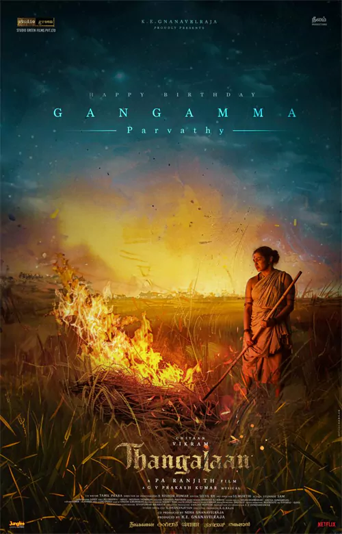 ఈరోజు(ఏప్రిల్ 7) టాలెంటెడ్ హీరోయిన్ పార్వతీ తిరువోతు పుట్టినరోజు సందర్భంగా 'తంగలాన్'లో ఆమె నటించిన గంగమ్మ క్యారెక్టర్ ఫస్ట్ లుక్ రిలీజ్ చేశారు మేకర్స్. మహిళా రైతు క్యారెక్టర్ లో ఆమె నటిస్తున్నట్లు ఫస్ట్ లుక్ ద్వారా తెలుస్తోంది.