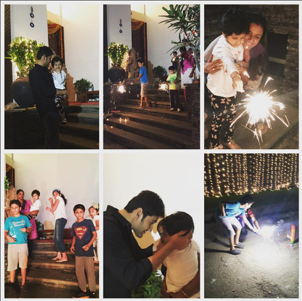 Superstar Mahesh Babu's kids, Gautham and Sitara, have celebrated Diwali the other day itself. Yesterday evening they have indulged in crackers at their house in Jubilee Hills under the supervision of Namrata Shirodkar. She says, "It's the best Diwali ever!! Crackers excitement And happiness".