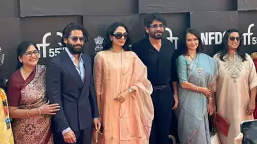 ఈ కోవలోనే అక్కినేని ఫ్యామిలీ కూడా గోవా చేరుకుంది.నాగార్జున(nagarjuna)అమల(amala)నాగ చైతన్య(naga chaintanya)తో పాటు చైతు కాబోయే భార్య శోభిత ధూళిపాళ్ల(sobhita dhulipala)కూడా ఈ వేడుకకి హాజరయ్యింది. రెడ్ కార్పె్ట్పై ఆ నలుగురు వాక్ చేస్తూ ఫోటోగ్రాఫర్లకు పోజులిచ్చారు.ముఖ్యంగా కాబోయే వధూవరుల హోదాలో చైతు, శోభిత లు రెడ్ కార్పెట్ పై నడవడం స్పెషల్ అట్రాక్షన్గా నిలిచింది.ఇటీవలే ఆ ఇద్దరి నిశ్చితార్థం జరగగా డిసెంబర్ 4న వివాహం జరగనుంది.