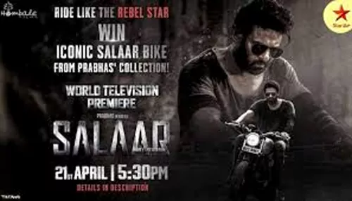 వరల్డ్ టెలివిజన్ ప్రీమియర్ హోదాలో ఏప్రిల్ 21 ఆదివారం సాయంత్రం 5 : 30 గంటలకి సలార్ స్టార్ మా లో టెలికాస్ట్ కానుంది. ఈ విషయానికి సంబంధించి ప్రభాస్ ఫ్యాన్స్ కి అదిరిపోయే గుడ్ న్యూస్. సలార్ లో ప్రభాస్ వాడిన బైక్ ని మీరు గెలుచుకోవచ్చు.ఏంటి నిజామా అని అంటున్నారా! నూటికి నూరుపాళ్ళు ఇది నిజం. అది ఎలా అంటే సలార్ టీవీ లో వస్తున్నంతసేపు కూడా ఒక పక్కన ప్రభాస్ బైక్ కనిపిస్తు ఉంటుంది. మూవీ కంప్లీట్ అయ్యే వరకు బైక్ కనపడుతుంటుంది.అప్పుడు మీరు చెయ్యవలిసిందల్లా బైక్ ఎన్ని సార్లు కనపడిందో లెక్క పెట్టడమే.