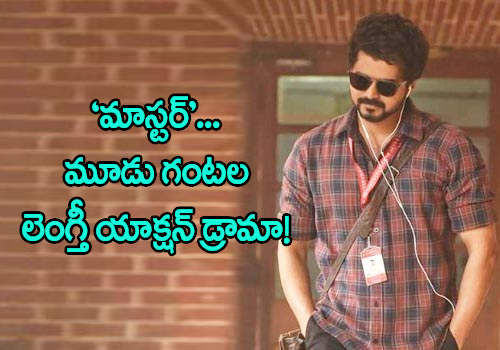ఇదిలా ఉంటే.. 'మాస్టర్' చిత్రం నిడివికి సంబంధించి ఓ ఆసక్తికరమైన విషయం తెలిసింది. అదేమిటంటే.. దాదాపు 181 నిమిషాల పాటు ఈ యాక్షన్ డ్రామా సాగుతుందట. అయితే నిడివి ఎక్కువే అయినా.. అందరికీ కనెక్ట్ అయ్యేలా మూవీని పిక్చరైజ్ చేశారట లోకేష్. మరి.. ఈ లెంగ్తీ యాక్షన్ డ్రామా జనాలను ఏ మేరకు రంజింపజేస్తుందో తెలియాలంటే కొన్నాళ్ళు వేచి చూడాల్సిందే.
