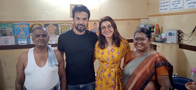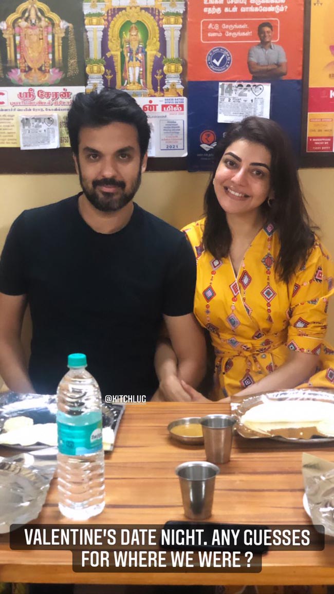 టాలీవుడ్ చందమామ కాజల్ అగర్వాల్, ఆమె భర్త గౌతమ్ కిచ్లు ఫిబ్రవరి 14 వాలెంటైన్స్ డేని ఎక్కడ సెలబ్రేట్ చేసుకున్నారో తెలుసా? ఏ ఫైవ్ స్టార్ హోటల్లోనో, ఇంకేదైనా ఖరీదైన డెస్టినేషన్లోనో అనుకుంటున్నారా? అయితే తప్పులో కాలేసినట్లే. ఆ ఇద్దరూ ఆదివారం తమిళనాడులోని పొల్లాచ్చికి వెళ్లారు. అక్కడి శాంతి మెస్కి వెళ్లి ఢిన్నర్ చేశారు. అది కాజల్ ఫేవరేట్ మెస్. దానిని ఇద్దరు భార్యాభర్తలు నడుపుతున్నారు. ఆ ఇద్దరితో కలిసి ఫొటోలకు పోజులు కూడా ఇచ్చారు కాజల్ అండ్ గౌతమ్. వాటిని తన ఇన్స్టాగ్రామ్ స్టోరీస్లో షేర్ చేసింది కాజల్. "వేలంటైన్స్ డేట్ నైట్. మేం ఎక్కడ ఉన్నామో ఏమైనా ఊహించగలరా?" అంటూ దానికి క్యాప్షన్ జోడించింది.