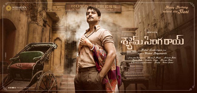 ఫిబ్రవరి 24 నాని బర్త్డేని పురస్కరించుకొని చిత్ర బృందం 'శ్యామ్ సింగ రాయ్' ఫస్ట్ లుక్ పోస్టర్ను విడుదల చేసింది. ఆ పోస్టర్లో ఒక బెంగాలీ యువకుని గెటప్లో నాని సర్ప్రైజ్ చేస్తున్నారు. ఆయన మీసకట్టు, హెయిర్ స్టైల్ విలక్షణంగా ఉన్నాయి. బ్యాగ్రౌండ్లో రాయల్ ప్రెస్, పక్కనే రిక్షా బండిని చూస్తుంటే ఈ మూవీ ఒక పీరియడ్ డ్రామా అనే విషయాన్ని స్పష్టం చేస్తున్నాయి. గమనించదగ్గ విషయమేమంటే నానిని వెనక నుంచి ఒక యువతి గట్టిగా కౌగలించుకుంది కానీ, ఆమె ముఖం అసలు కనిపించడం లేదు. ముగ్గురు హీరోయిన్లలో ఎవరు ఆయనను కౌగలించుకున్నారనే విషయాన్ని మన ఊహలకి వదిలేశాడు దర్శకుడు. అయితే ఆ పోస్టర్ ప్రకారం 'శ్యామ్ సింగ రాయ్' ఒక గొప్ప లవ్ స్టోరీ అనే విషయాన్ని ఊహించవచ్చు.