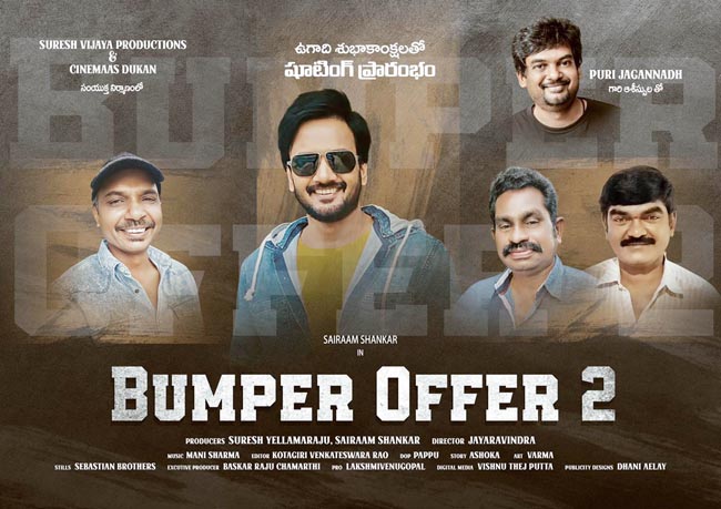 సాయిరాం శంకర్ హీరోగా సురేష్ విజయ ప్రొడక్షన్స్, సినిమాస్ దుకాన్ సంయుక్త నిర్మాణంలో 'బంపర్ ఆఫర్ 2' చిత్రాన్ని ఈరోజు అధికారికంగా ప్రకటించారు. ఒరిజినల్ వచ్చిన పన్నెండు సంవత్సరాల తర్వాత రెండవ భాగం చేస్తుండటం గమనార్హం. అయితే ఇది సీక్వెల్ కాదు. రాయలసీమ ప్రాంతం నేపథ్యంలో అవుట్ అండ్ అవుట్ కమర్షియల్ ఎంటర్ టైనర్ గా దీన్ని రూపొందించబోతున్నారు. 'బంపర్ ఆఫర్' చిత్రానికి దర్శకత్వం వహించిన జయ రవీంద్ర ఈ రెండో భాగానికి కూడా దర్శకత్వం వహిస్తున్నారు.