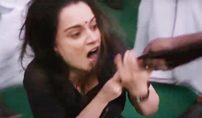 "మహాభారతంలో ద్రౌపదికి కూడా ఇదే జరిగింది. తన చీరను లాగి అవమానపరచిన ఆ కౌరవుల కథ ముగించి, జడను ముడేసుకొని శపథాన్ని నెరవేర్చుకుంది. ఆ మహాభారతానికి ఇంకో పేరుంది. జయ!" అంటూ కంగన రోషంతో, ఆగ్రహంతో, ఆవేశంతో చెప్పిన డైలాగ్ 'తలైవి' సినిమా ఎలా ఉండబోతోందో తెలియజేసింది.