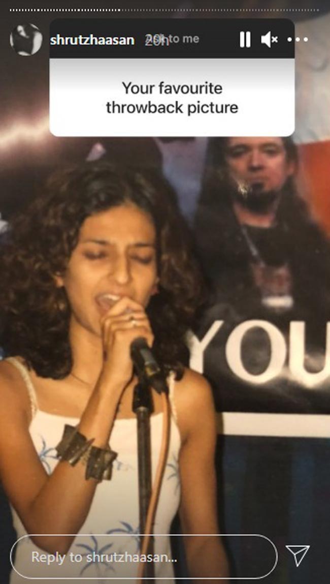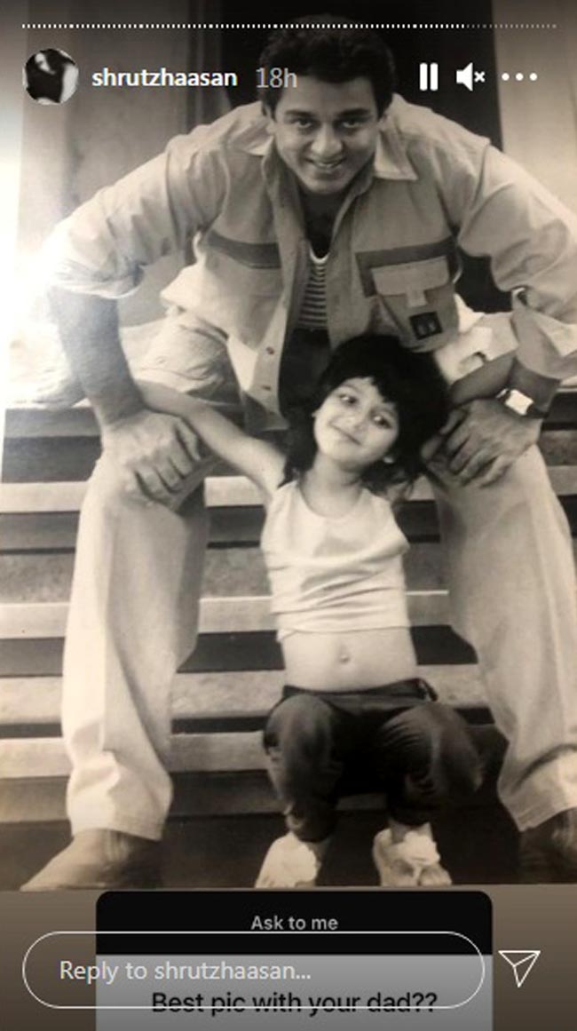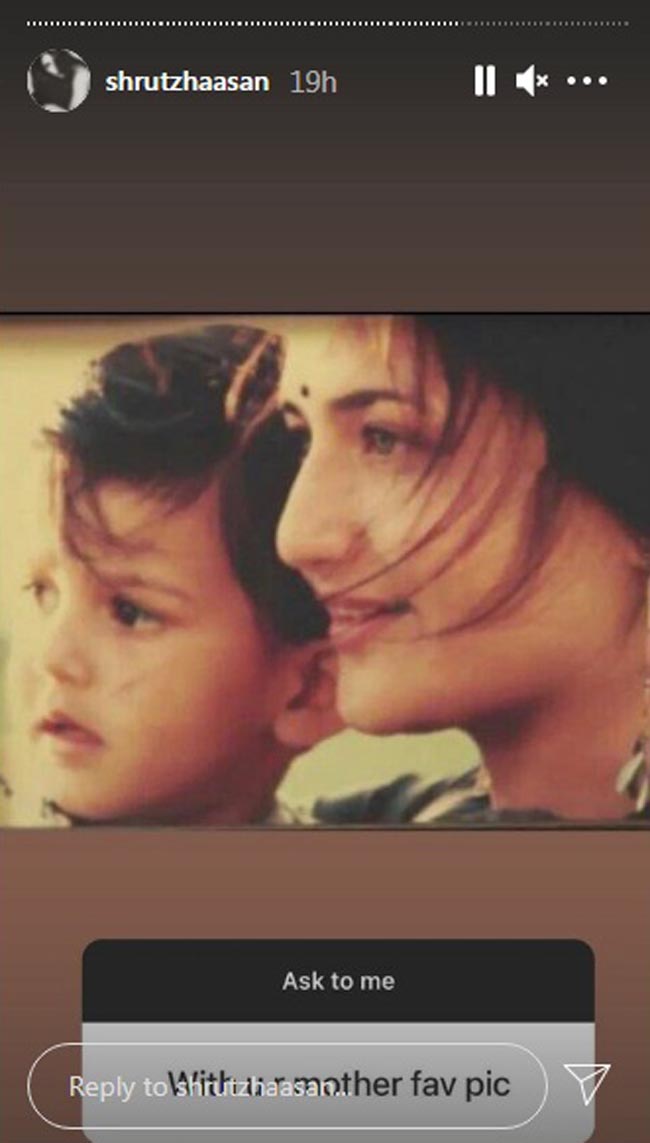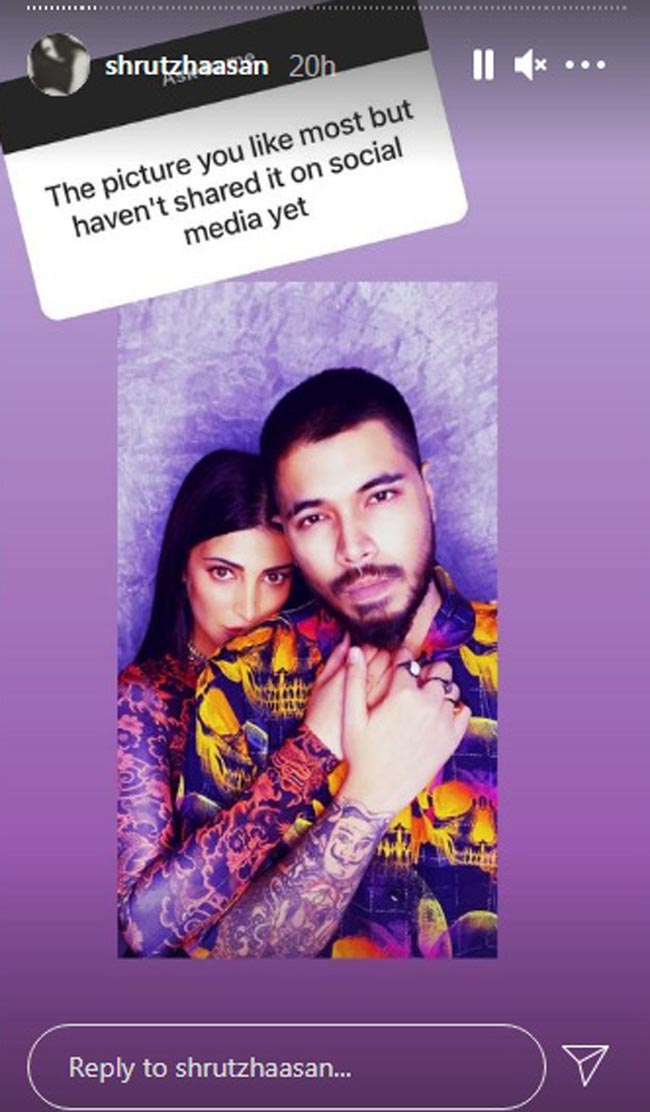 "Ask to me" పేరుతో వారితో చేసిన సంభాషణను పిక్చర్స్ రూపంలో పొందుపరిచి ఇన్స్టా స్టోరీలో షేర్ చేసింది. వాటిలో తనకు ఇష్టమైన అనేక విషయాలను వెల్లడించింది శ్రుతి. వాటిలో ఆమెకు బాగా నచ్చి, ఇప్పటిదాకా షేర్ చెయ్యని ఫొటో ఏదని అడిగితే, తన ప్రియుడు శంతను హజారికాతో కలిసి ఉన్న ఫొటోను షేర్ చేసింది.