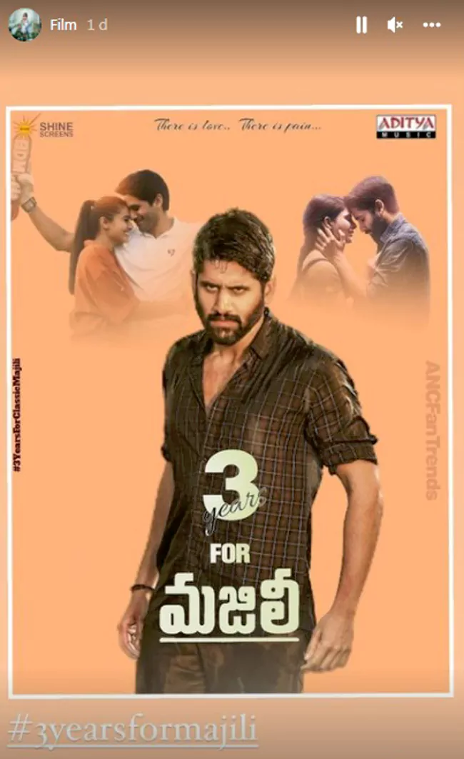 'మజిలీ' విడుదలై ఏప్రిల్ 5కి మూడేళ్లు నిండాయి. ఈ సందర్భంగా ఆ సినిమా పోస్టర్ను తన ఇన్స్టా స్టోరీస్లో షేర్ చేసింది సామ్. ఆ పోస్టర్లో చైతూ ప్రముఖంగా కనిపిస్తున్నాడు. అలాగే సమంతతో, మరో హీరోయిన్ దివ్యాంశ కౌశిక్తో చైతూ కలిసున్న స్టిల్స్ కూడా ఆ పోస్టర్లో ఉన్నాయి. ఈ పోస్టర్ను సమంత షేర్ చేయడం ఆలస్యం.. ఆమె పోస్ట్ వైరల్గా మారిపోయింది. స్క్రీన్పై చైతూ-సామ్ జోడీ సూపర్ హిట్టంటూ ఫ్యాన్స్ కామెంట్లు పెడుతూ వచ్చారు.